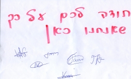 They stated their gratitude in Hebrew and wrote on a sheet of paper: “Thank you for our life here”. It was a pleasure for each of the boys to sign this document.