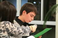 However, his guests had surprises for him as well: a great cake, pictures of Artur in Yemin Orde displayed over the large canteen wall, videos of him and video greetings. The honour of opening the bar-mizvah was given to the President of the fund PWC Igor Levenshtein. After the Hebrew greeting, Igor Levenshtein gave Artur a gift – an electronic translator from Hebrew and English and a “Pleasing Surprise” from donors – 100EUR.